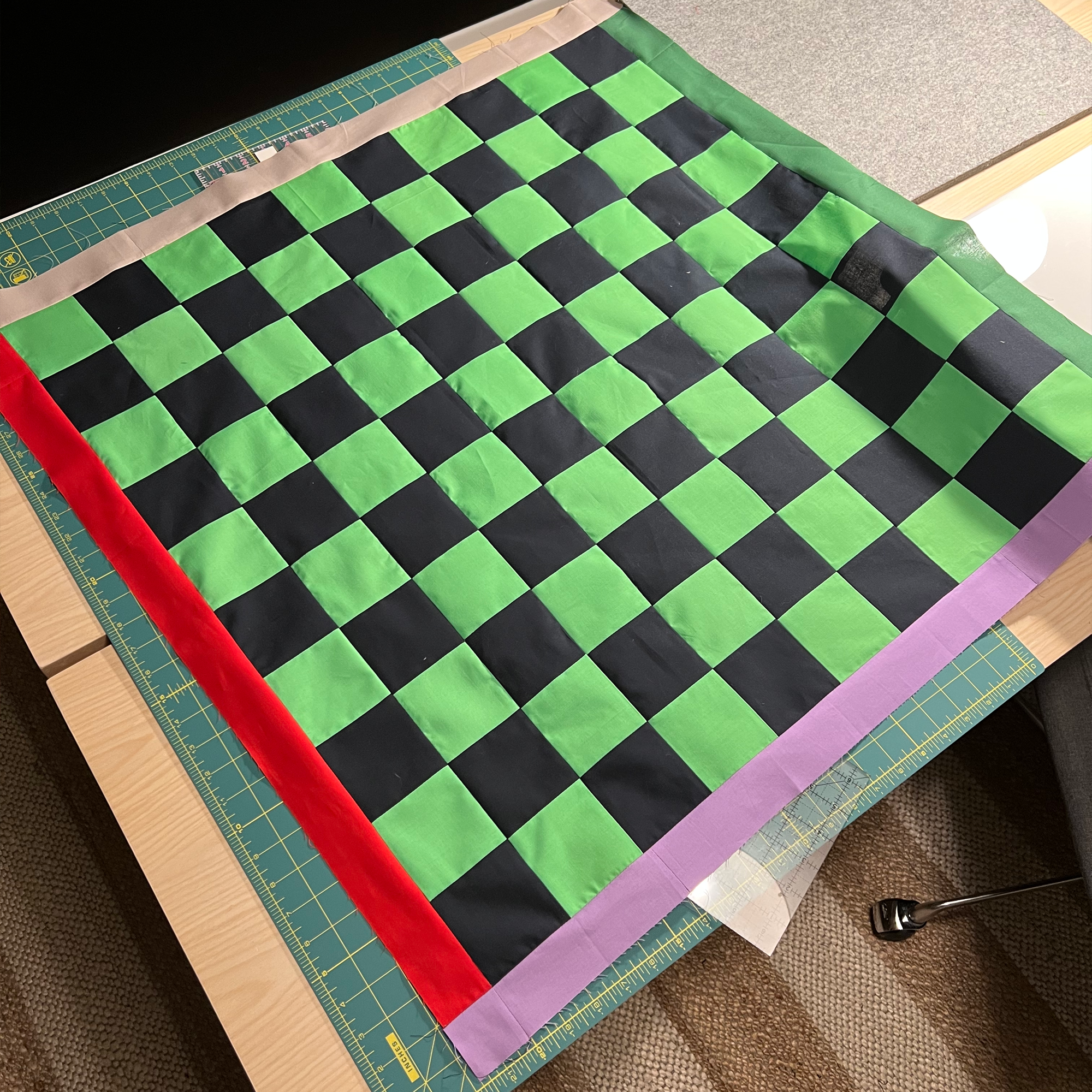 Instead of a normal baby quilt, I made a keep the toddler occupied quilt. In Canada this game is snakes and ladders, in America it’s chutes. Snakes are better.